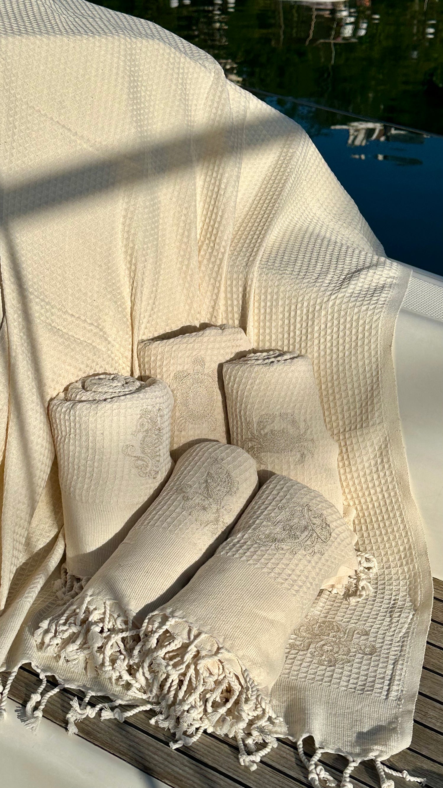 Immerse yourself in seaside luxury with our cotton beach towels – soft, light, and meticulously crafted from premium natural fibers. Each towel is a testament to artistry, featuring intricate embroidery, captivating prints, and mesmerizing patterns that seamlessly blend functionality with coastal elegance. Elevate your retreat with unparalleled comfort and style, turning every beach moment into pure relaxation.