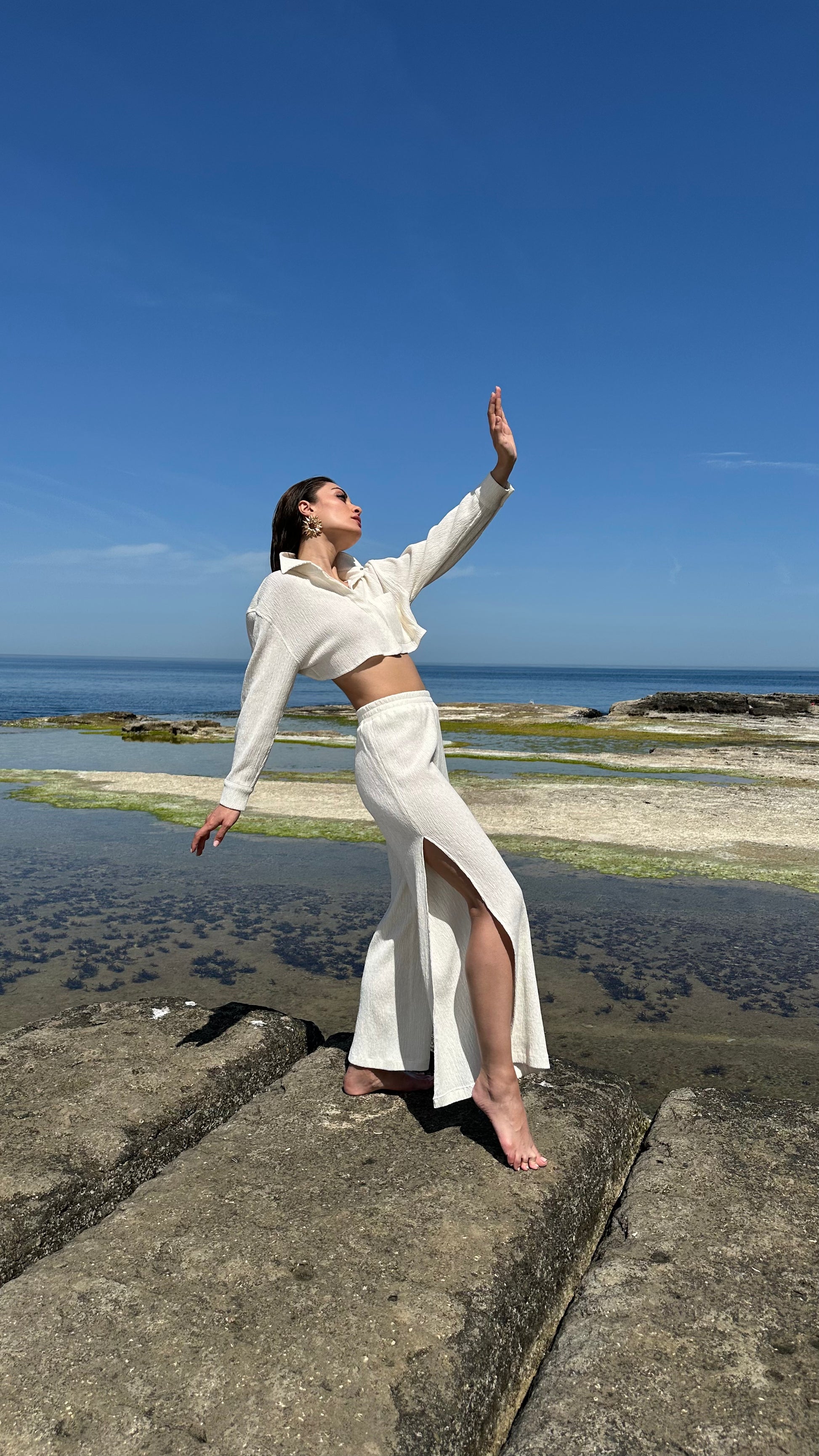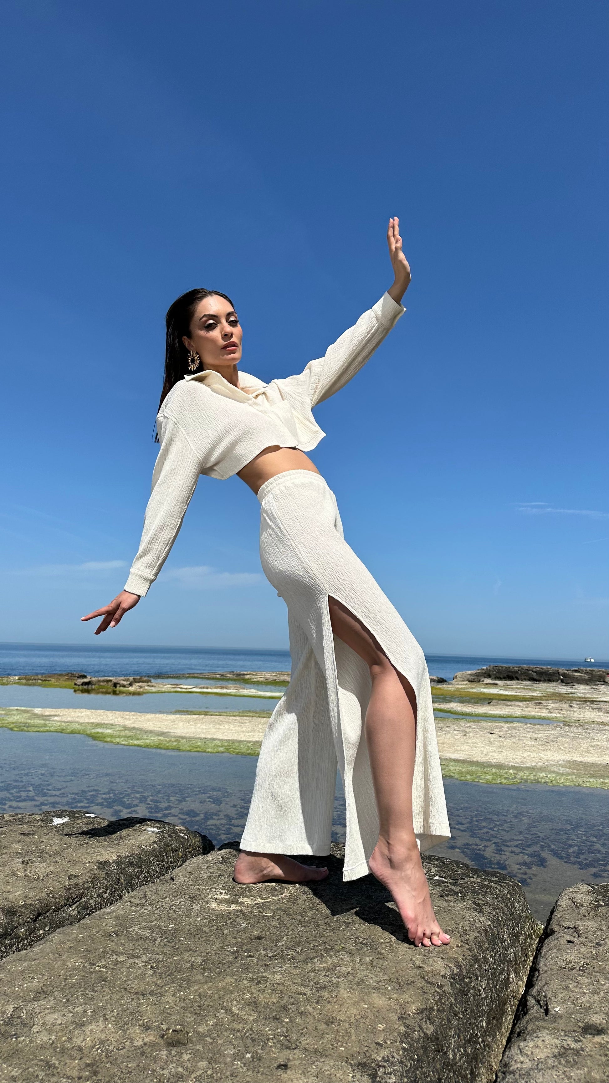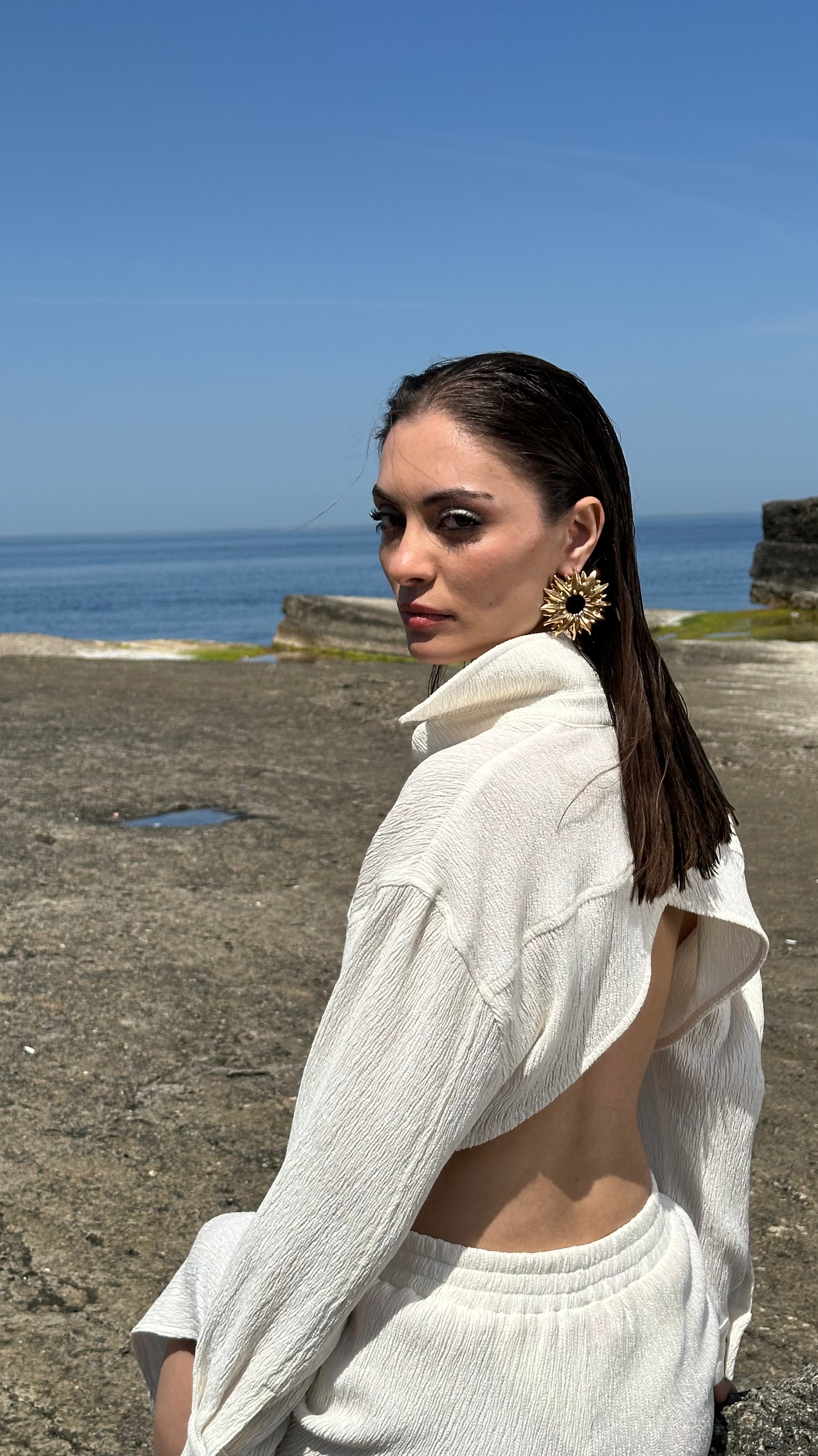 Hafif, %100 pamuktan üretilmiş, uzun kollu Seafoam kısa gömlek ile tanışın. Cesur sırt dekoltesi sayesinde sahil havası taşıyan şık bir görünüm sunuyor. Rahat ve ferah yapısıyla, deniz köpüğü ile güneşin parıltısını her detayında hissedeceksiniz.