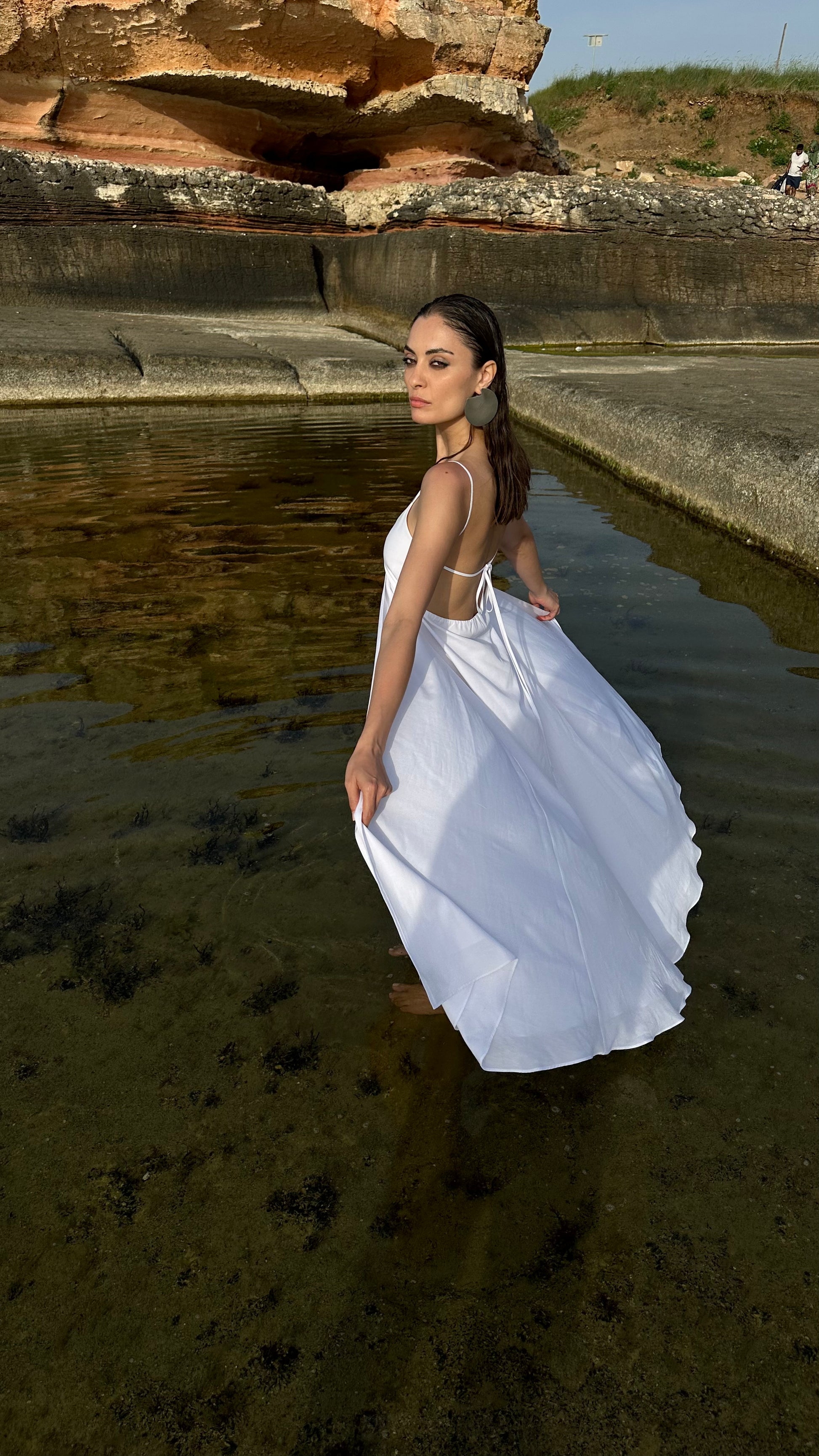 Hafif, rahat ve tiril tiril Shoreline Elbise, göğüs kısmındaki tek düğmesinden aşağıya serbestçe açılan detayıyla öne çıkıyor. Sahil stilinizi zarif ve rahat bir şekilde tamamlamak için tasarlanan bu ince poplin elbise, katmanlı kombinlerin vazgeçilmezi olacak.